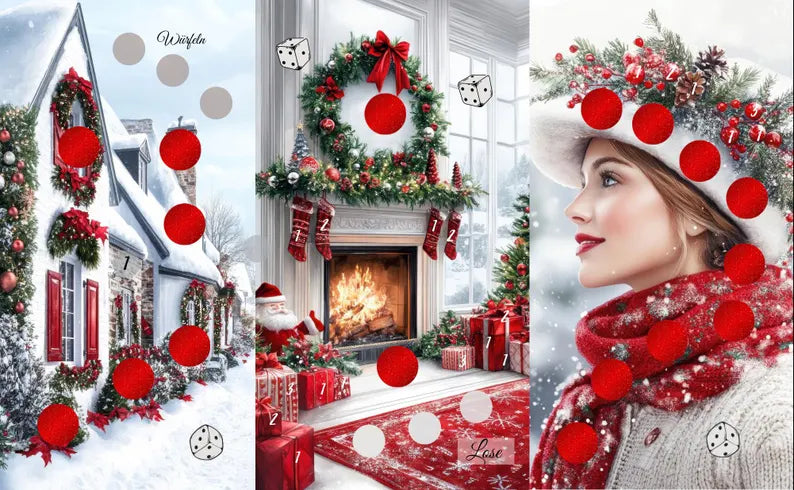 Christmas Home ist eine 3er Klappkarte in A7. Hier könnt ihr würfeln , Abstreichen, Rubbeln und Losen.